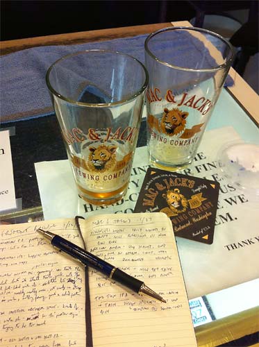 Most people think of just one beer when they think of Mac & Jack’s, their African Amber, but they actually have four year-round brews. We missed their fall seasonal, the Cascadian Dark Ale, unfortunately, and their spring, the C U Lator Barley Wine, won’t be ready for a few weeks, yet. D’oh! Supposedly they have a Pale Ale in the works for summer — seems like as good a reason as any to re-visit them.